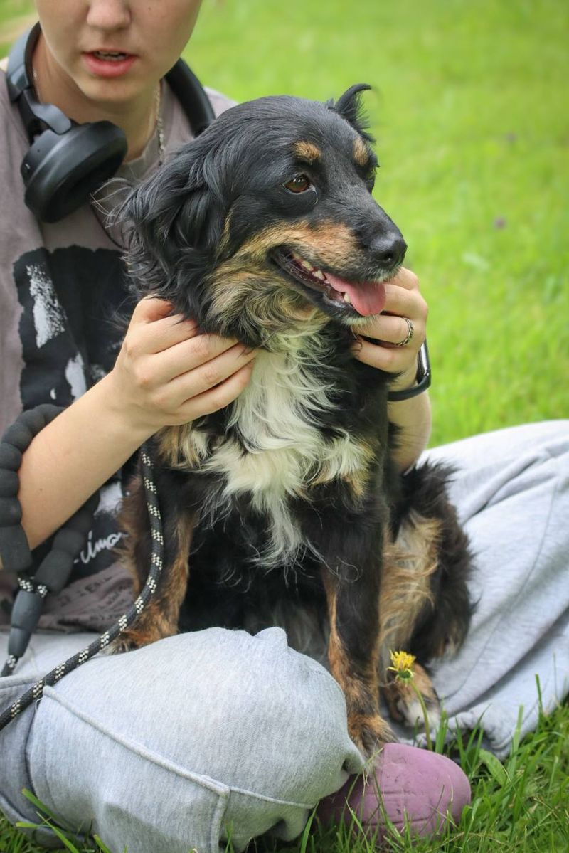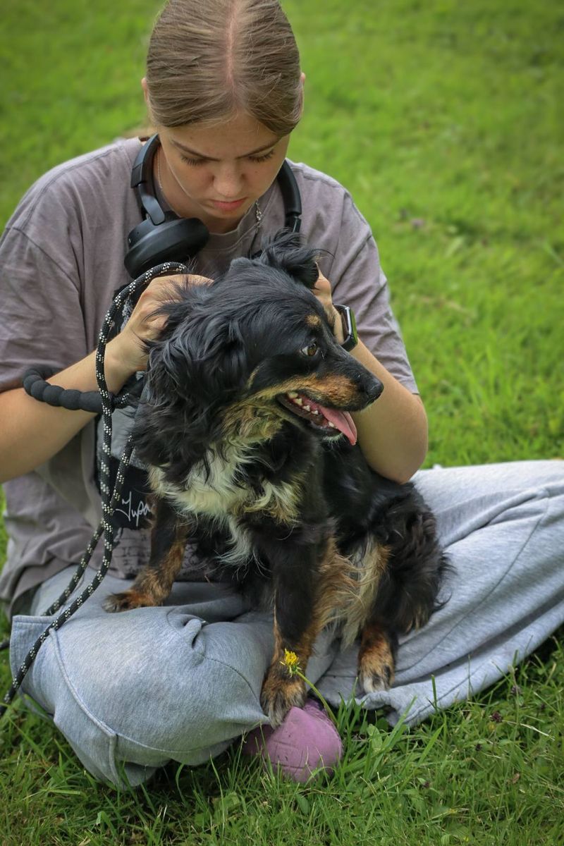 Į prieglaudą pateko 2024 m. rugsėjį kartu su Mortu ir Mia, kai trijulė atklydo į sodybą Alytaus rajone, netoli Simno.