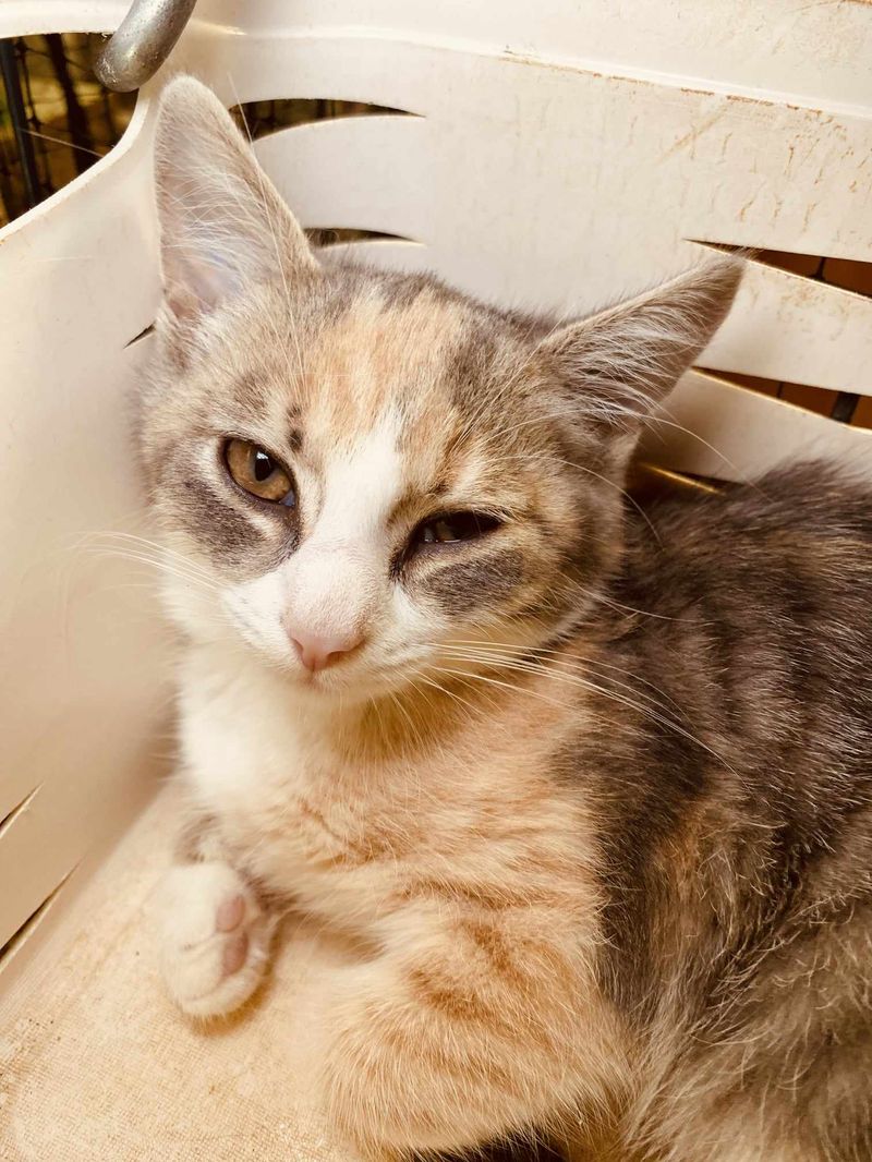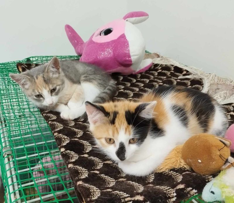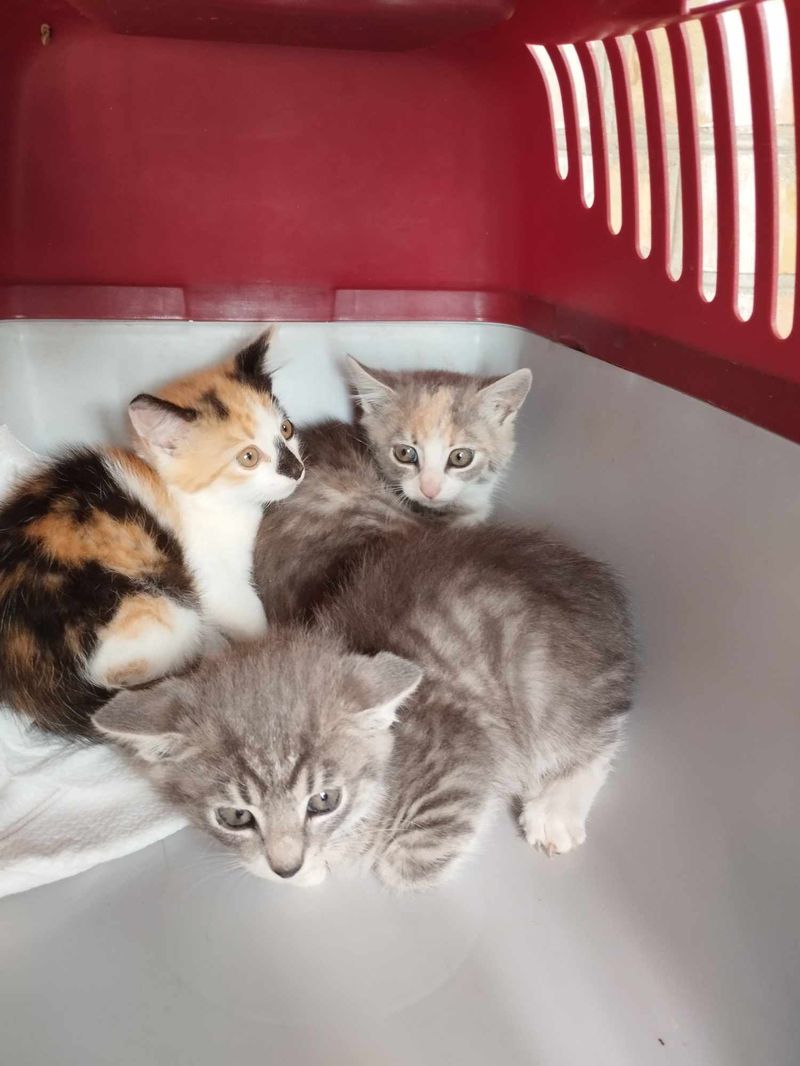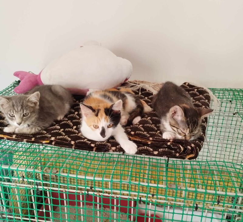 2024 liepos 14 d. mažieji – pilkarainis Tatulis (neišgyveno..), trispalvės Mozaika (juodnosiukė) ir Tatu – atkeliavo iš Kurtuvėnų, Šiaulių r. Tel.060262931