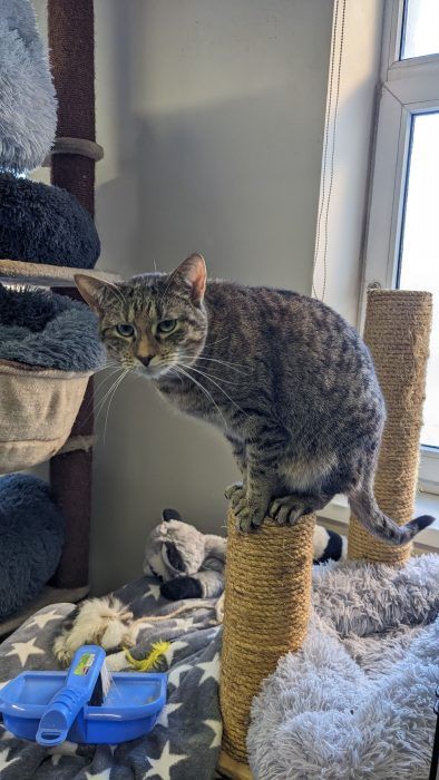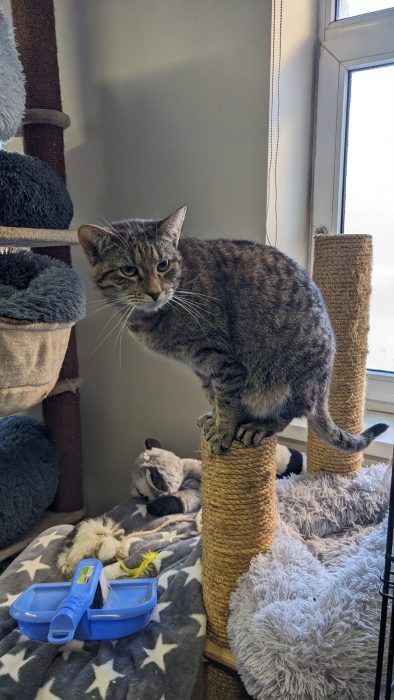 Ši nuostabi raina katytė – tikra namų puošmena! Čili turi ne tik išskirtinį grožį, bet ir stiprų charakterį. Ji kupina energijos, smalsi ir žaisminga, tačiau ne visada lengvai prisileidžia žmones – jai reikia laiko, kad pasitikėtų.