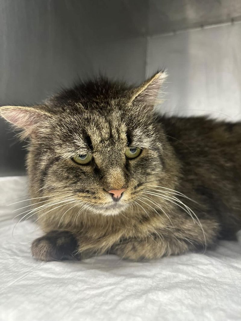 Didžiulis rainas katinas iš Šeškinės kiemų. Mirus šeimininkui buvo išmestas į lauką.
